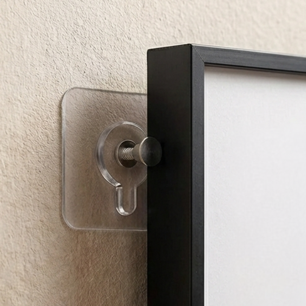 Our hooks are transparent & sleek adhesive designed to blend seamlessly with any interior style. Each hook features a strong self-adhesive backing that ensures a secure hold on a wide range of surfaces, making installation quick and effortless. Their multi-purpose versatility makes them ideal for displaying our posters.